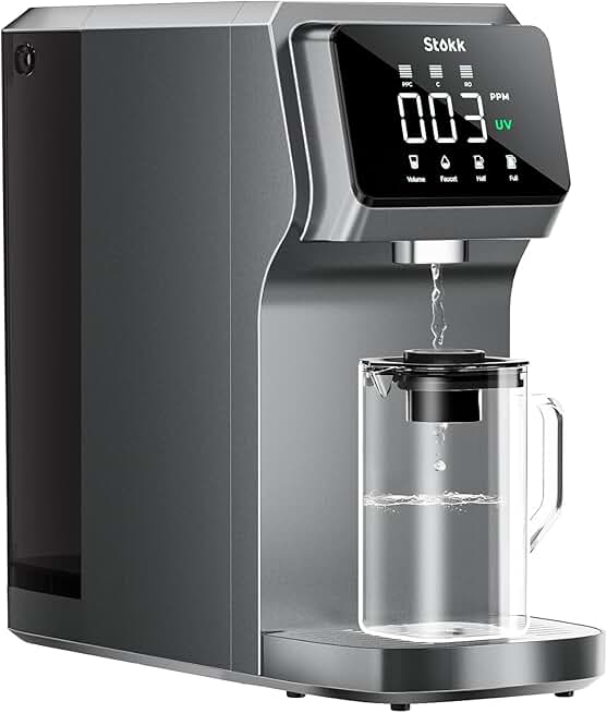 Stokk T1 UV Countertop Reverse Osmosis Water Filter, Carafe Alkaline Boost, 6-Stage RO Filtration System, Home Water Purifier, Reduce TDS PFAS, Gray