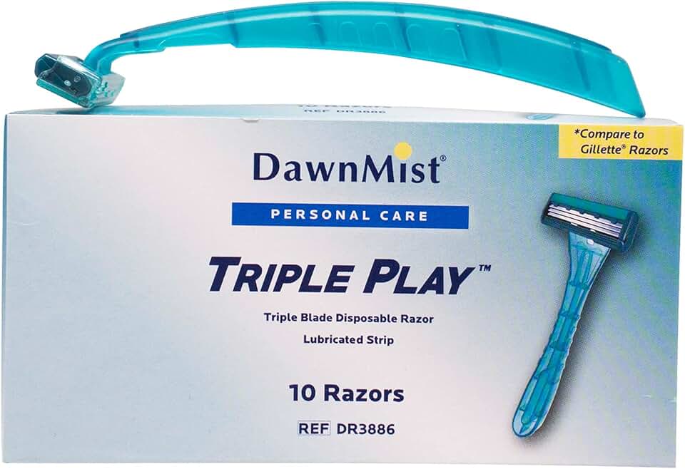 Dukal Dawn Mist Triple Play Facial Razor, Teal Handle with Clear Plastic Guard, Pack of 500