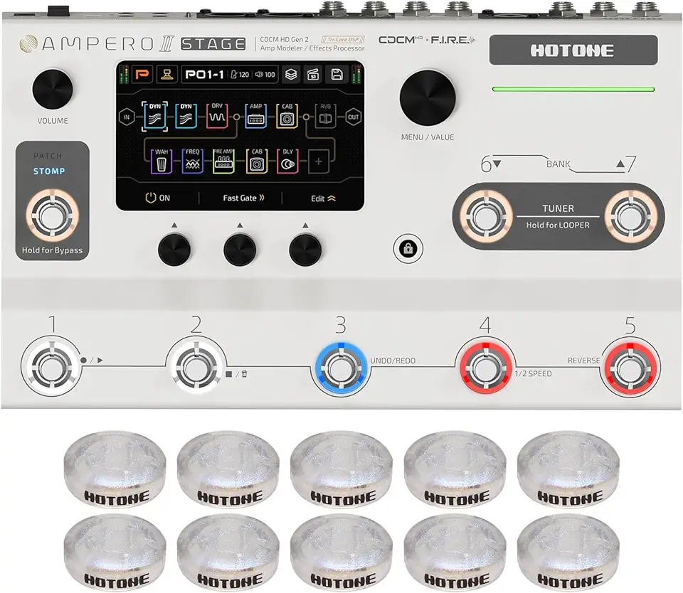 Multi-Effects Pedal Dual Effect Chains with FX Loop MIDI I/O Stereo OTG USB Audio Interface Touch Screen Ampero II Stage(Include 10 PCS Additional Footswitch Toppers)