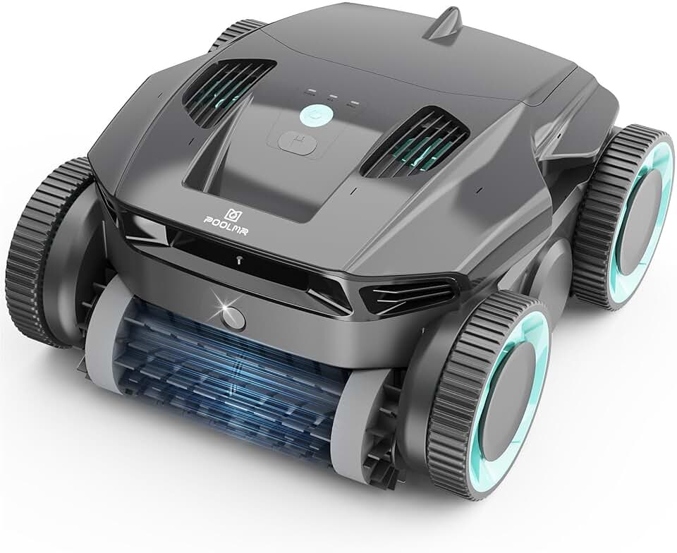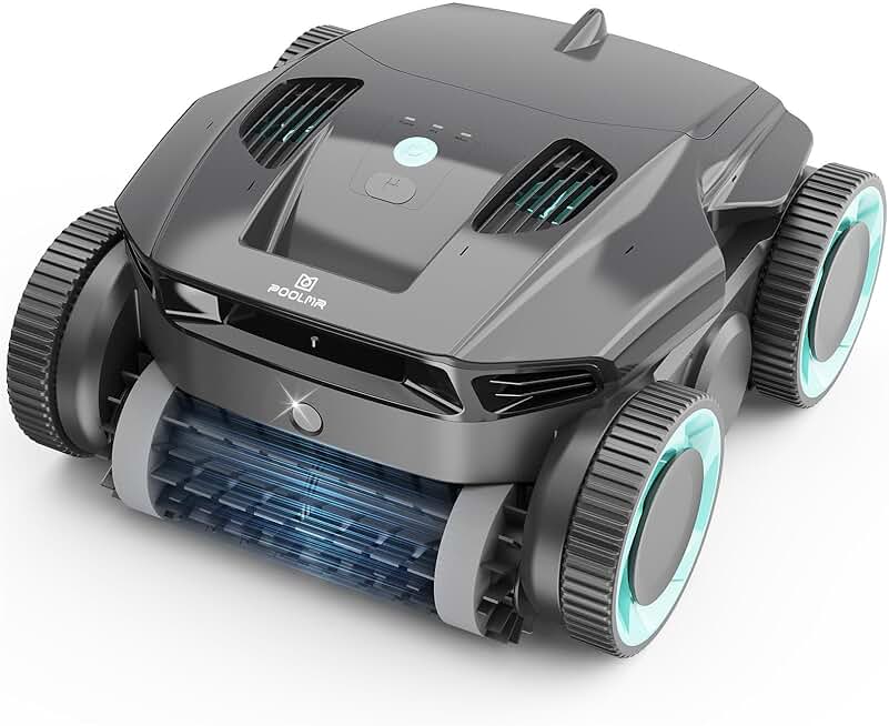 Cordless Robotic Pool Cleaner - Automatic Pool Vacuum Robot with Wall Climbing - 120 Mins Runtime, Quad-Motor Powerful Suction, Self-Parking, for In Ground Pool Up to 1500 sq. ft, Black
