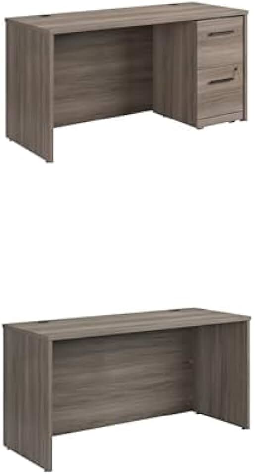 Sauder OfficeWorks 60" x 24" 2-File Single Ped Desk, Hudson Elm Finish