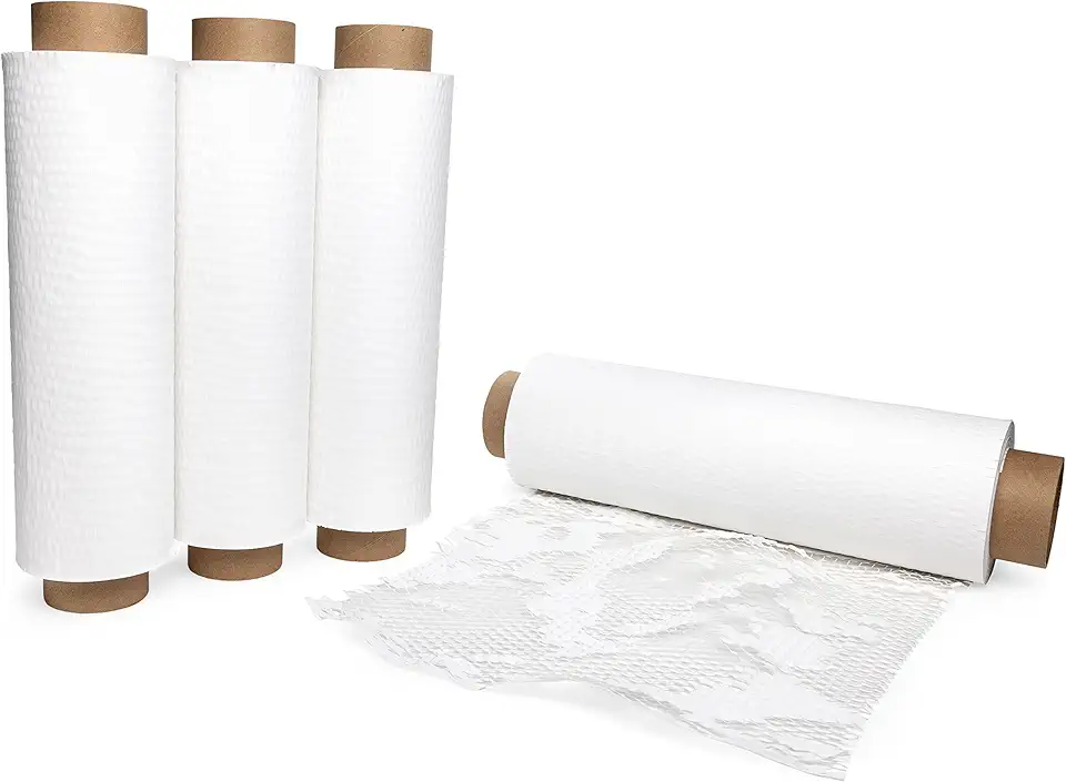 IDL Packaging 15.25" x 300' Refill Roll (Pack of 4) for MP-300W HexcelWrap Honeycomb Packing Paper Station, White - Natural Kraft Paper with Interlocking Slit Design for Shipping and Moving
