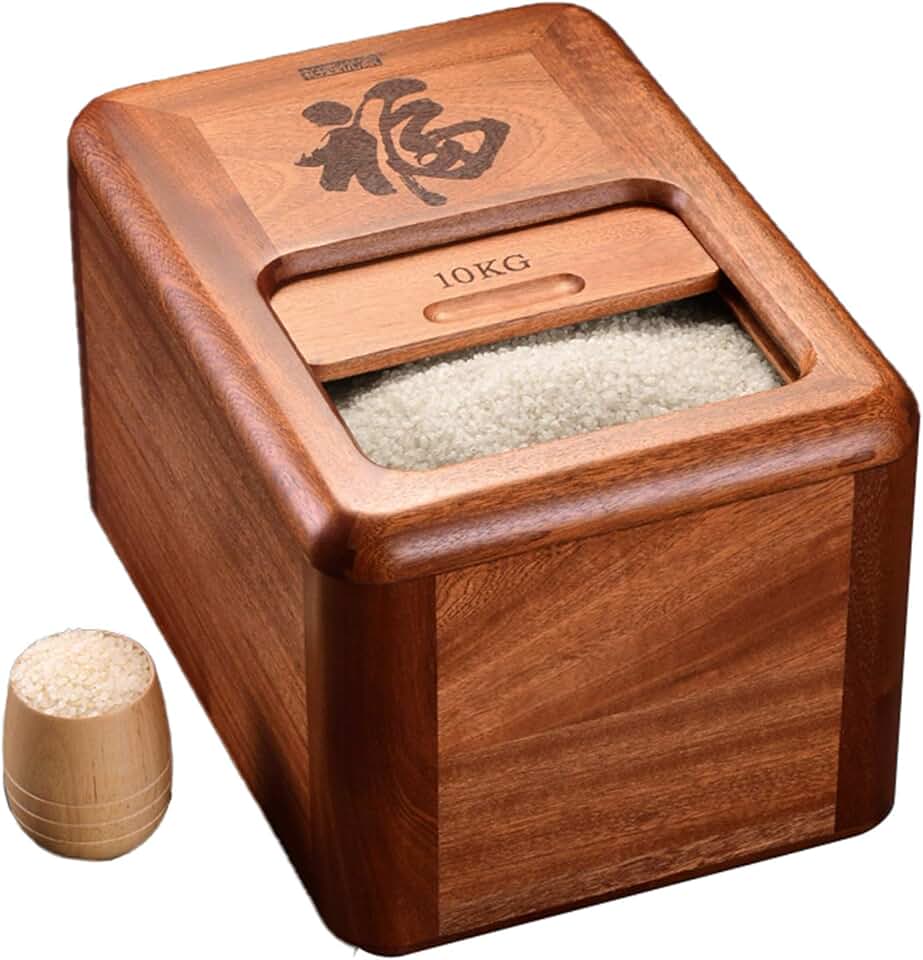 AIZYR Wood Rice Storage Container, Sealed Kitchen Cereal Storage Bin with Measuring Cup for Rice, Cereal Grain, Flour, Soybeans,10kg