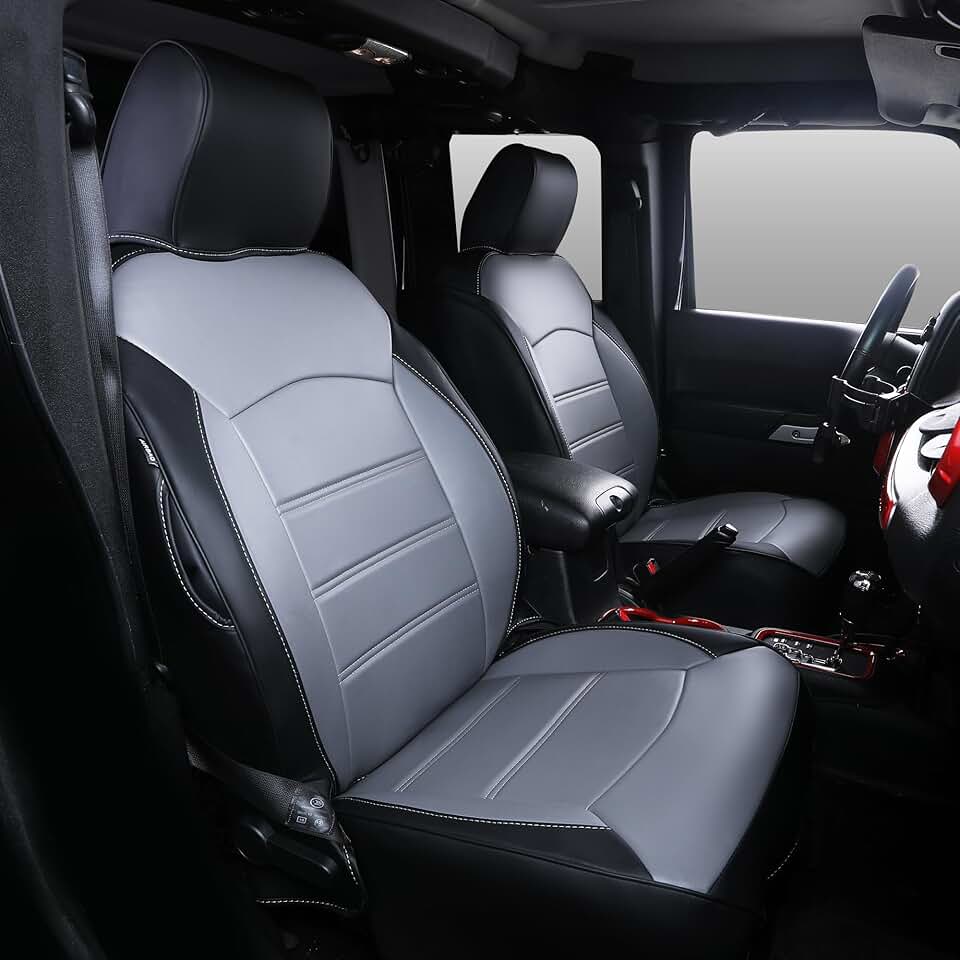 Custom Fit Car Seat Covers for Jeep Wrangler JK 4 Door 2013 2014 2015 2016 2017 Faux Leather Durable, Waterproof, and Pet-Friendly (Black+Gray)