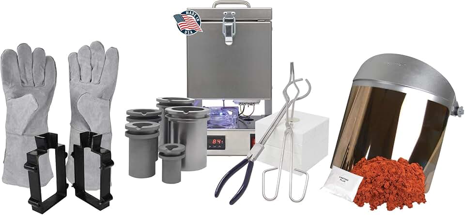 Tabletop Furnace Deluxe QuikMelt Set with Tongs, Crucibles, Ceramic Flanges, 10 Lbs Petrobond, Safety Gear Sand Casting Precious Metal Melting Kit