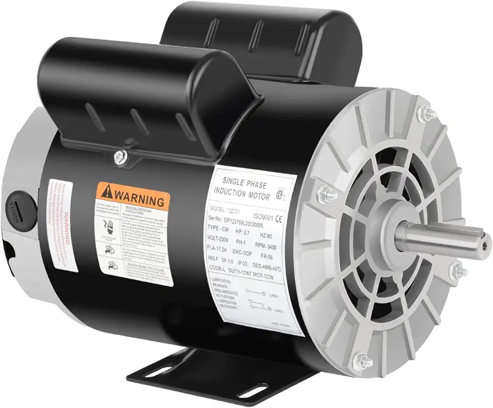 3.7 HP Air Compressor Motor, 3450 RPM Electric Motor, 230V 17.2A Single Phase Motor, 56 Frame 5/8" Keyed Shaft, Commercial-Duty CCW Rotation, 1.88" Shaft Length for Air Compressors