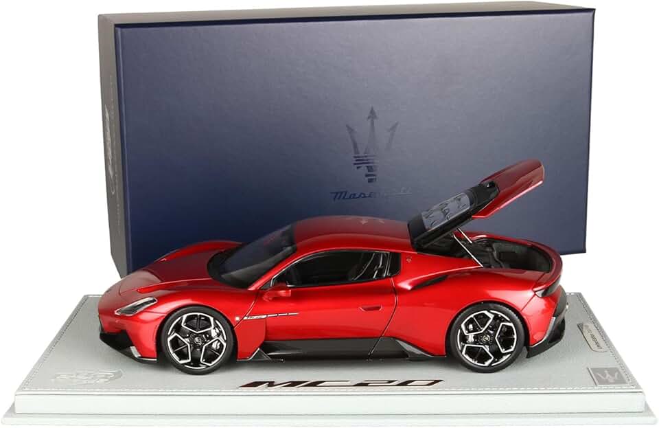 MC20 Rosso Vicente Red Metallic with Display CASE Limited Edition to 100 Pieces Worldwide 1/18 Diecast Model Car by BBR HE180051CDIE