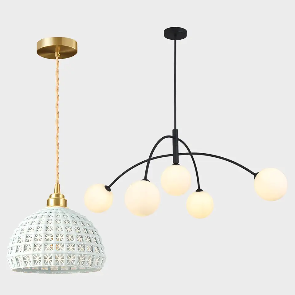 Mid Century Chandelier Black Ceiling Light 5 Light Sputnik Light Fixture and Modern Ceramic Pendant Light for Dining Room Kitchen Bedroom