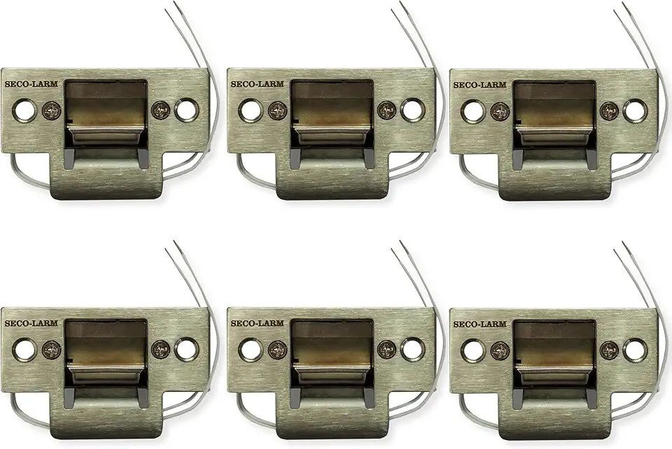 Seco-Larm SD-991A-D1Q Pack of 6 Mini No-Cut Electric Door Strikes; Indoor Use, Converts Cylindrical Lock Sets Into an Electronic Access-controlled Locking System, Stainless Steel Keeper