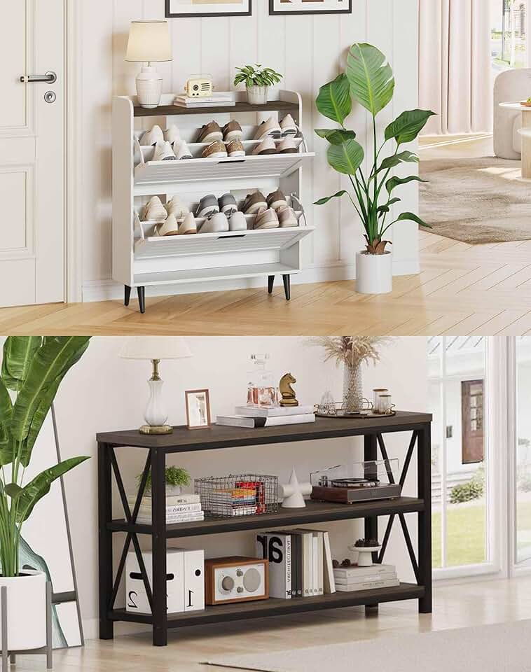 FATORRI Shoe Cabinet and Console Table for Entryway Hallway Living Room (Walnut Brown+White Oak)