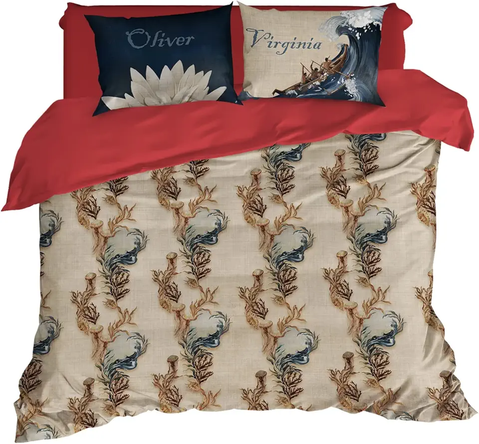 Waves Bedding Set, Sea Pattern Duvet Cover, White Lotus Sheet Set, B-269 (Queen Set 95x87)
