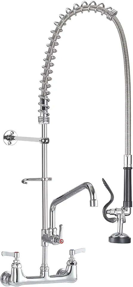 IMLEZON Commercial Faucet, Wall Mount Sink Faucet 8 Inch Center 47 Inch Commercial Kitchen Faucet with Pre-Rinse Sprayer and 12 Inch Swivel Spout