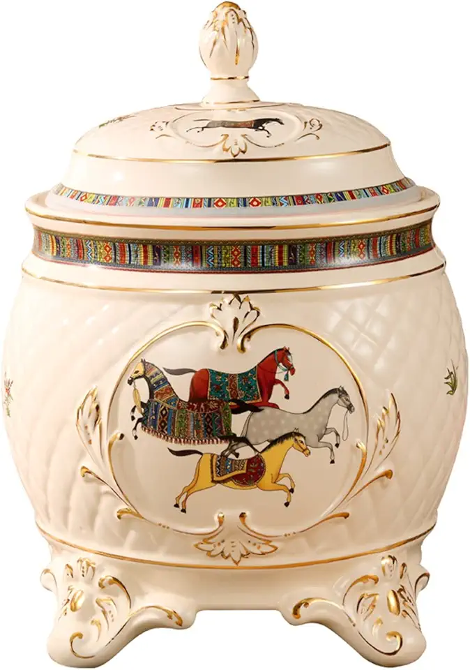 Rice Dispenser, European Style Ceramic Rice Dispenser with Lid, Sealed Kitchen Food Container Cereal Dispensor for Rice, Cereal, Flour, Dry Food