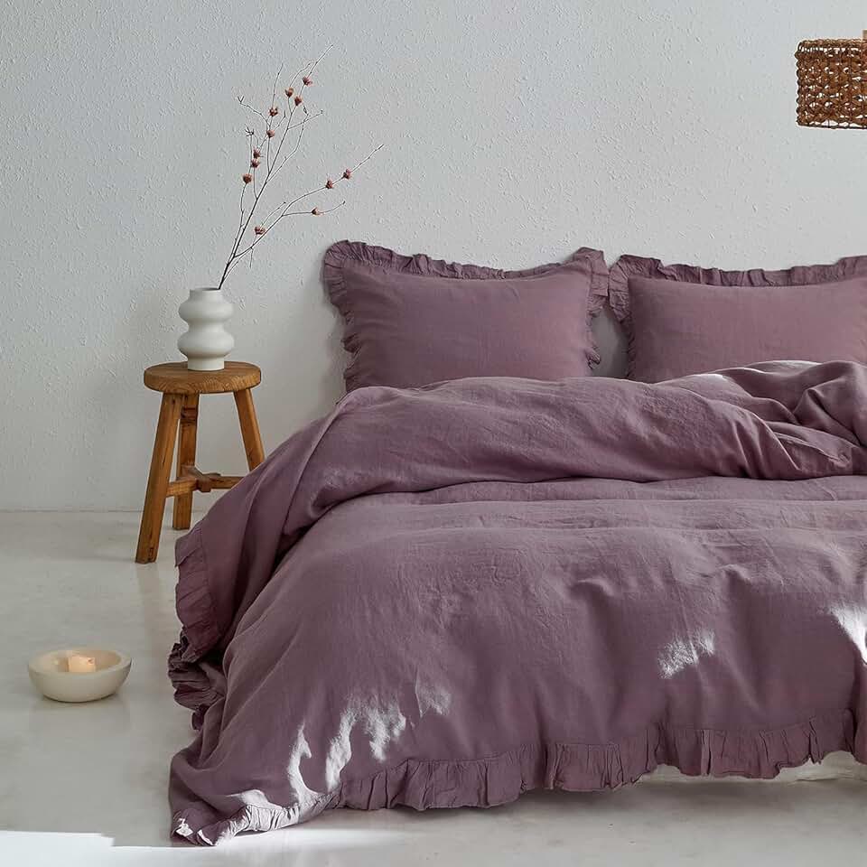 100% Linen Dusty Pink Duvet Cover 3 Pcs Duvet King Ruffled Bedding Set Bedspread King Size Comforter Boho Bedding Quilt Cover (Over Size 120X120)