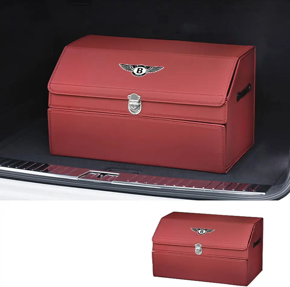 Car Trunk Organizer Box for Bentley Continental GT3 R/GT Speed/Continental Supersports 2011-2018 Double Layer Folding Car Boot Organiser Large Capacity Car Storage Box,Red-60 * 35 * 32 cm