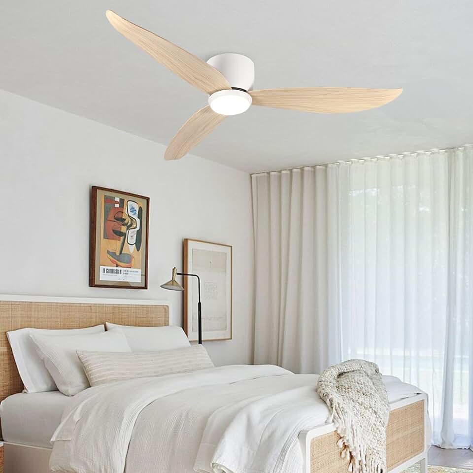52in Ceiling Fan with Lights and Remote,Quiet Reversible DC Motor,3 Blades Low Profile Ceiling Fan with Light for Bedroom,Living Room,Kitchen,Porch,Patio(White Wood)