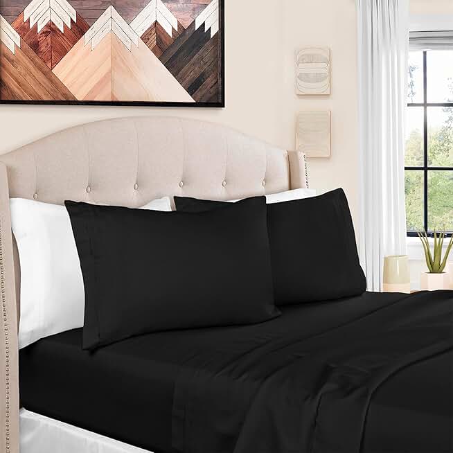 Superior Egyptian Cotton 4 Piece Sheet Set, Luxury 1500 Thread Count, Eco-Friendly, Sustainable Sheets, Basics, Solid, Deep Pocket Fitted Sheet, Flat Sheet, Pillowcases, California King, Black