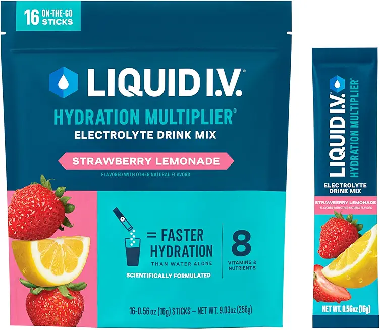 Liquid I.V.? Hydration Multiplier? - Strawberry Lemonade - Hydration Powder Packets | Electrolyte Powder Drink Mix | Easy Open Single-Serving Stick | Non-GMO | 16 Servings (Pack of 12)