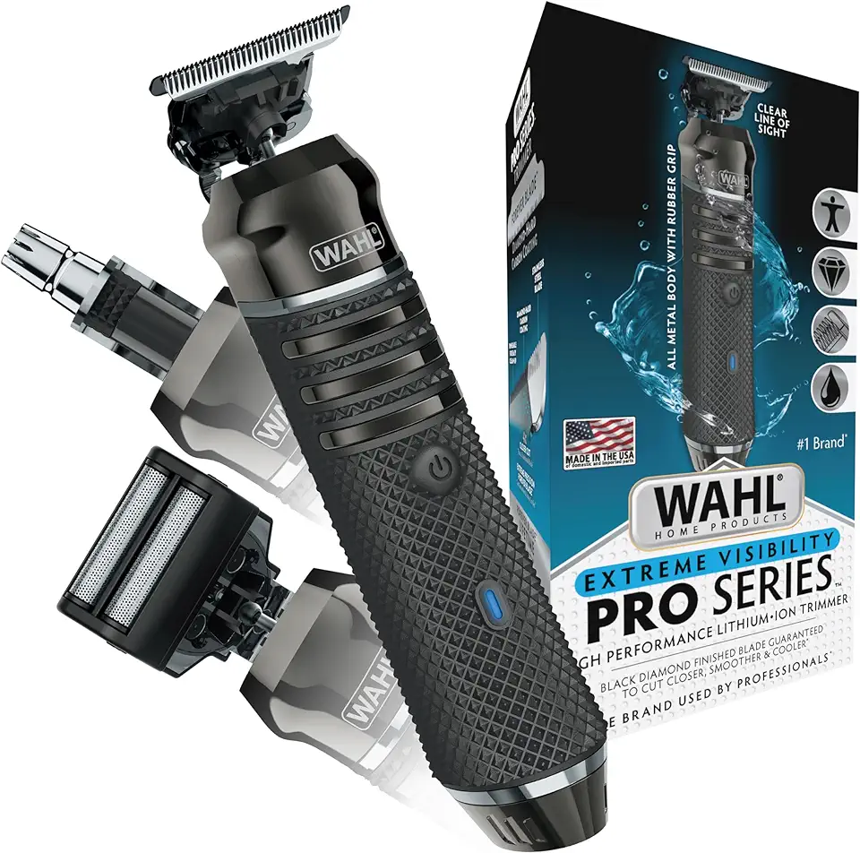Wahl USA Pro Series High Visibility Skeleton Style Trimmer, Lithium-Ion Cordless USB Rechargeable All in One Shaving & Close Cutting Beard Trimmer for Men with Near Zero Gap Blade – 3026018