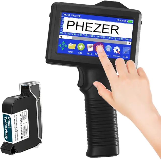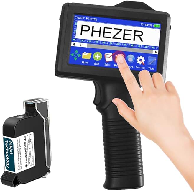 Handheld Inkjet Printer for Any Surface, Lightweight and Portable 360° All-Round Coding Machine for Retail Expiry Date/Time/Barcode/QR Code/Logo/Label, with Cartridge