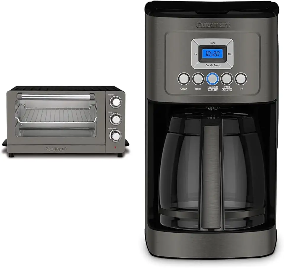 Cuisinart TOB-60N2BKS2 Convection AirFryer Toaster Oven Broiler, 1800-Watt Motor, Black Stainless & DCC-3200BKSP1 Perfectemp, 14 Cup Progammable with Glass Carafe Coffee Maker, Black Stainless Steel