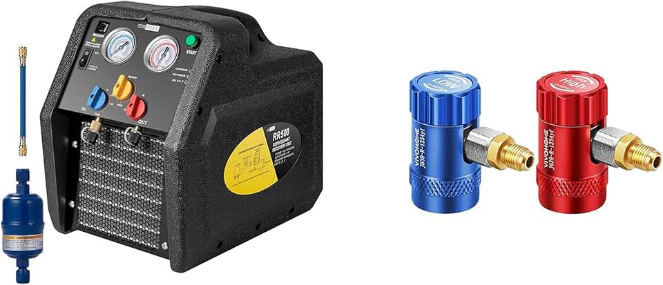 VIVOHOME R1234YF R32 1 HP Dual Cylinder Portable Refrigerant Recovery Machine Oil-Less Freon Recycling R1234yf Quick Couplers Adapter, High Low Side R1234yf Manual Couplers Connector