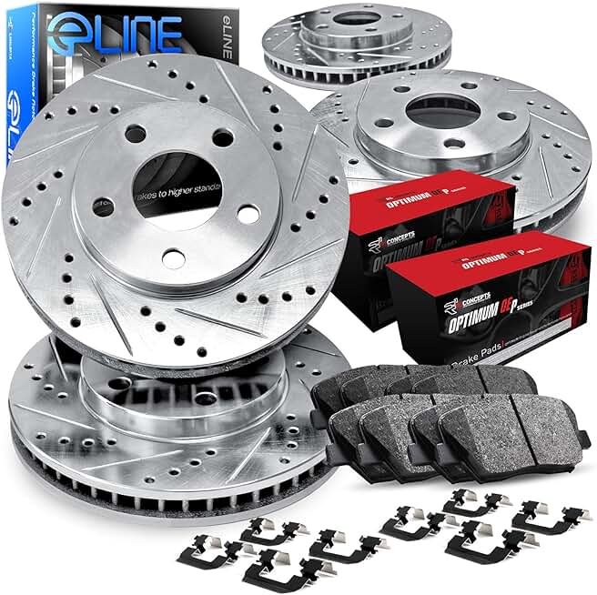 R1 Concepts Front Rear Brakes and Rotors Kit |Front Rear Brake Pads| Brake Rotors and Pads| Optimum OEp Brake Pads and Rotors |Hardware Kit|fits 2005-2007 Cadillac XLR, 2005-2009 Chevrolet Corvette