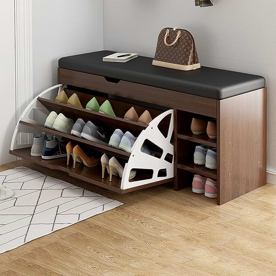 Flip-Drawer Shoe e Bench,PU Padded Shoe e Bench with Drawer,Wooden Shoe Rack Pull Down e Cabinet Stand Rack Cupboard Organizer for Entryway and Hallway,C,F80*30 * 51CM