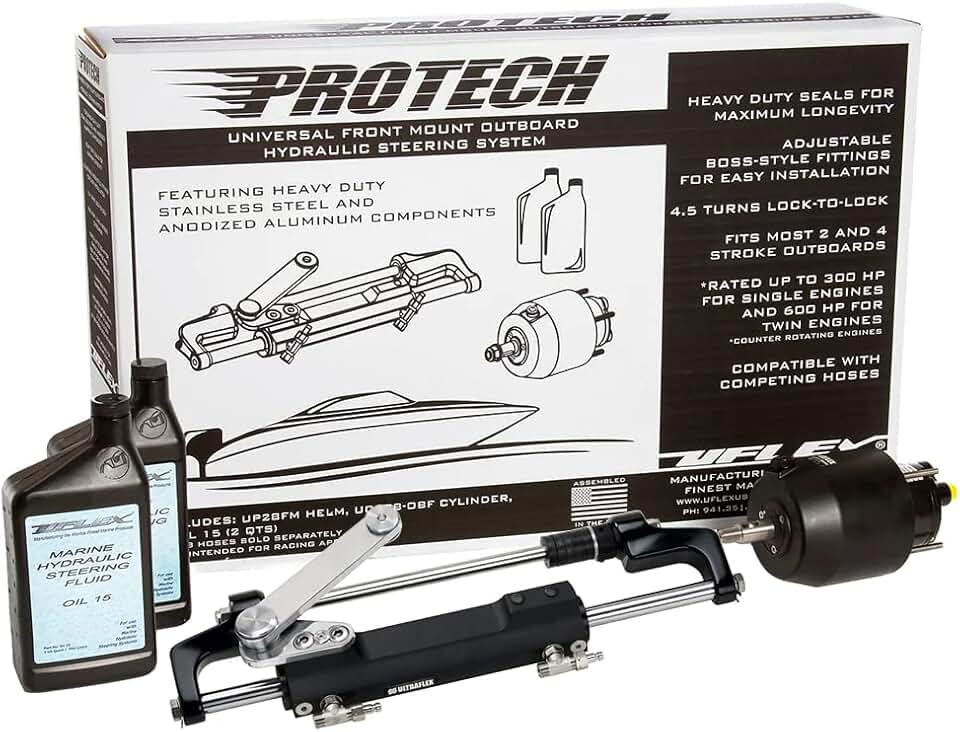 Uflex PROTECH 1.1 Front Mount OB Hydraulic System - includes UP28 FM Helm, Oil & UC128-TS/1 Cylinder - No Hoses