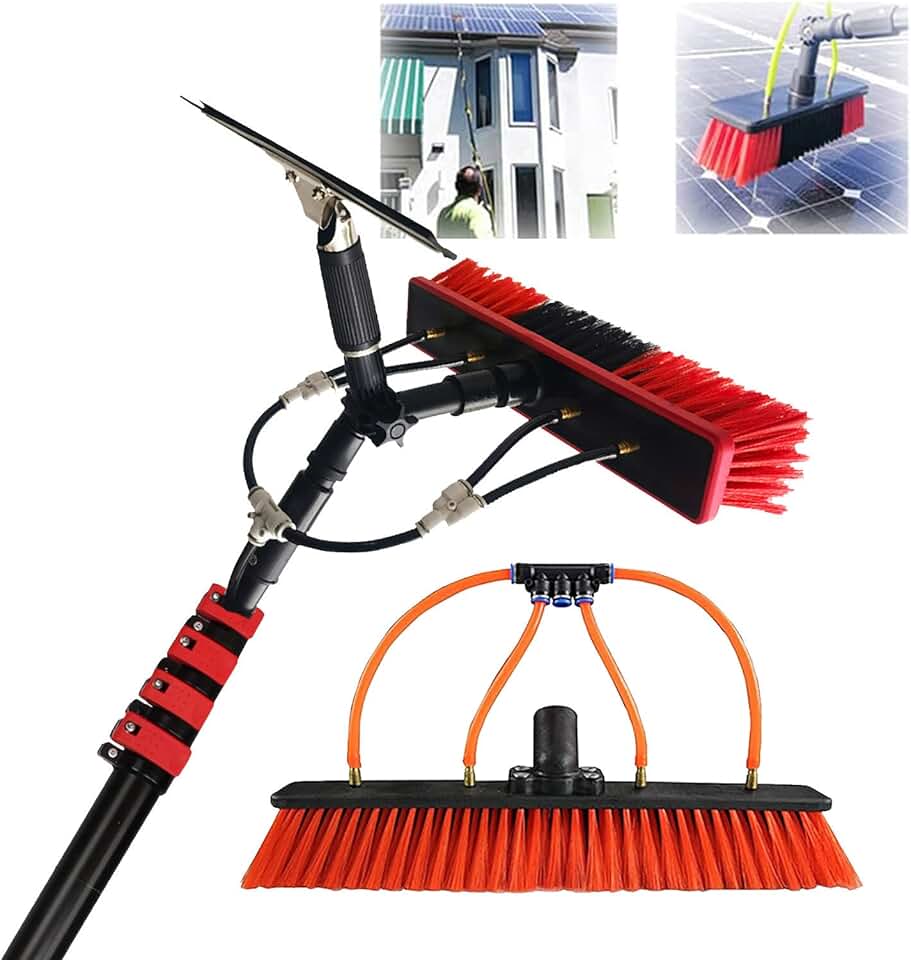 Solar Photovoltaic Panel, Special Cleaning Tool Telescopic Rod Cleaning Equipment Water Cleaning Brush(with Scraper),5.4M/18FT