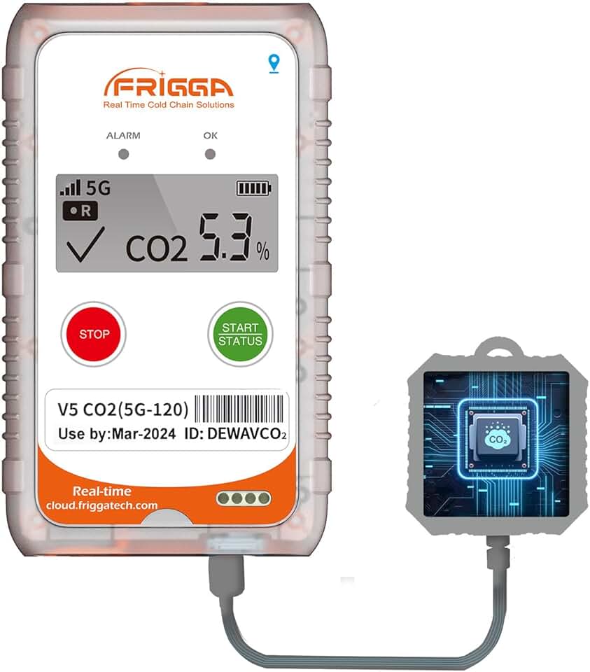 Frigga V5-CO2 4G/5G Real-Time CO2 Monitor Multi-Use Professional CO2 Detector Carbon Dioxide Temperature & Humidity Data Logger Rechargeable for Food Logistic Greenhouse