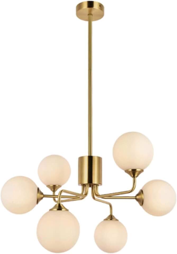 Modern Chandelier with White Frosted Glass Shade,6-Lights Sputnik Light with G9 Led Bulbs Industrial Hanging Ceiling Light for Dining Room-Copper. 6 Light/White/6 Light