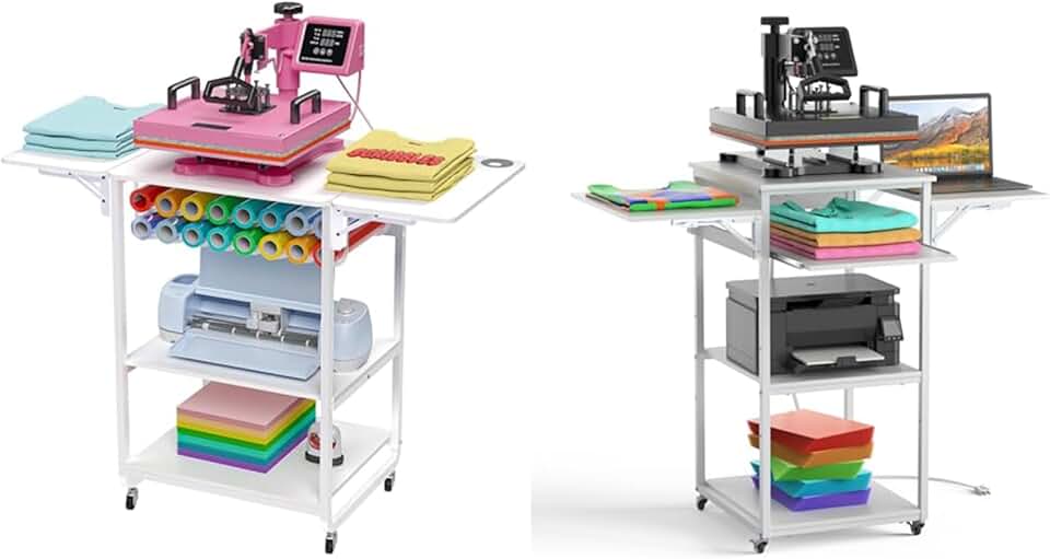 Movable Heat Press Table & Foldable Heat Transfer Machine Stand with Pull-Out Tray, Rolling Metal Workbench for DIY Sublimation Transfer Machine and Sublimation Printer