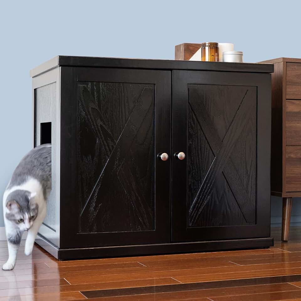 THE REFINED FELINE Cat Litter Box Enclosure Cabinet, Hidden Litter Tray Cat Furniture, Large + XLarge, Farmhouse Style, Espresso Color