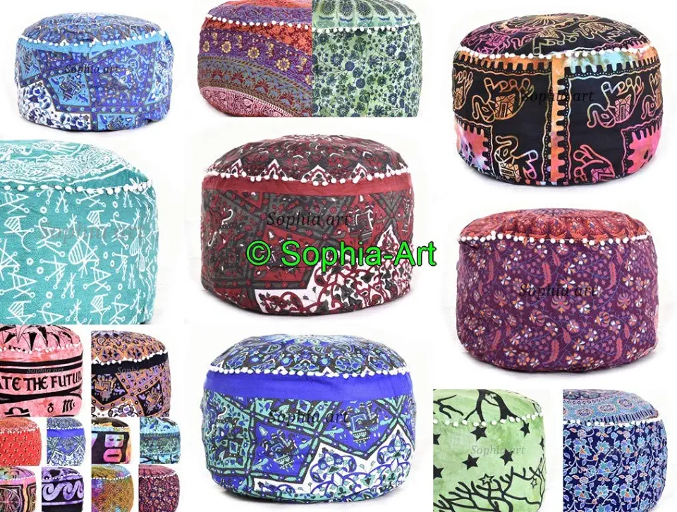 Sophia-Art Pouf Living Peacock Seating Cover Floor Room Hippie Ottoman Pillow Cover Mandala Pillow Indian Ottoman Round Floor Pouf Boho Large Pouf Cover Lot (20 Pcs Lot)