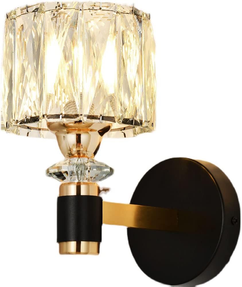 Crystal Wall Sconces Lighting, Simple Modern Black Wall Lights, Dimmable Wrought Iron Decor Wall Lamps for Bedroom Living Room, Leisure Indoor Places in Hallway Restaurant