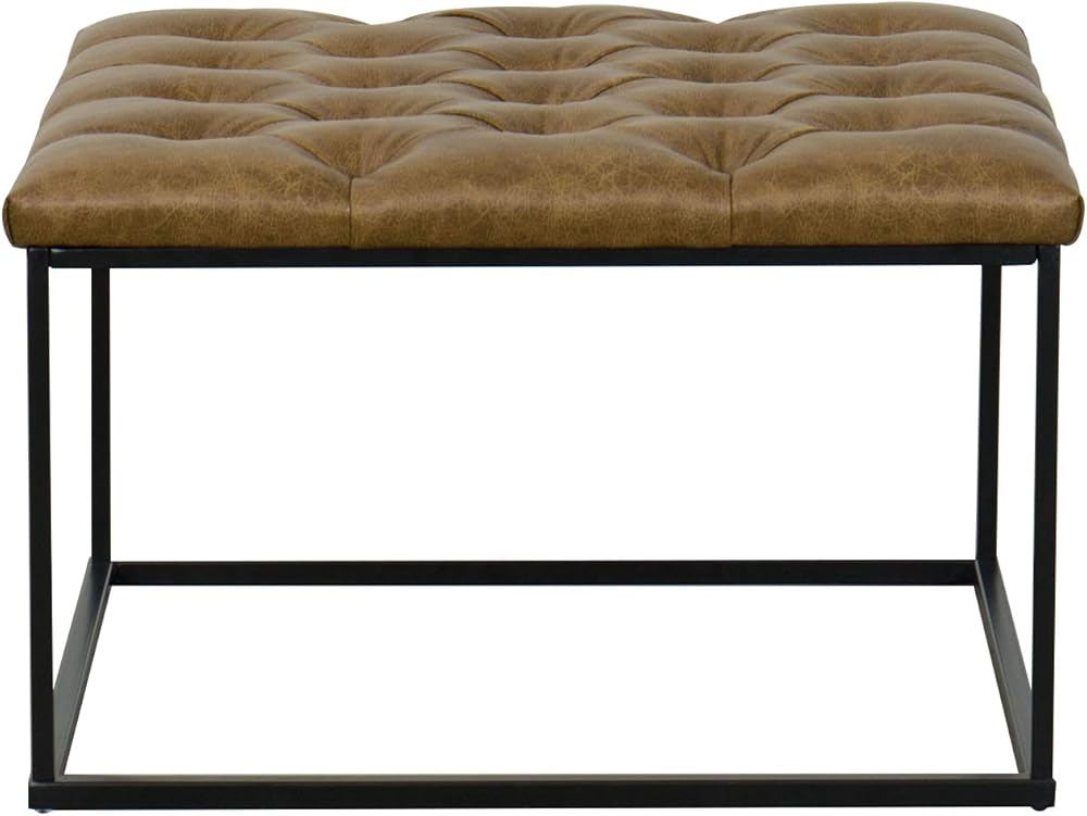 HomePop Draper Ottoman with Button Tufting - Light Brown Faux Leather Small