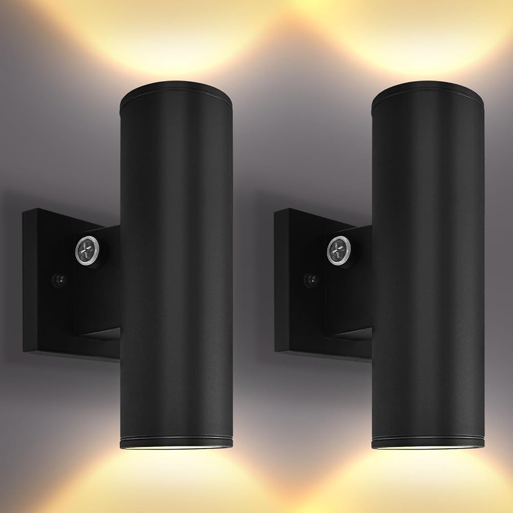Dusk to Dawn LED Modern Outdoor Wall Lights, 10" Cylinder, Up or Up and Down Light, 3CCT 3000K-5000K, Waterproof Wall Sconce, 12/15/18W, Dimmable, IP65, ETL, Exterior Porch Patio Garage 2-Pack