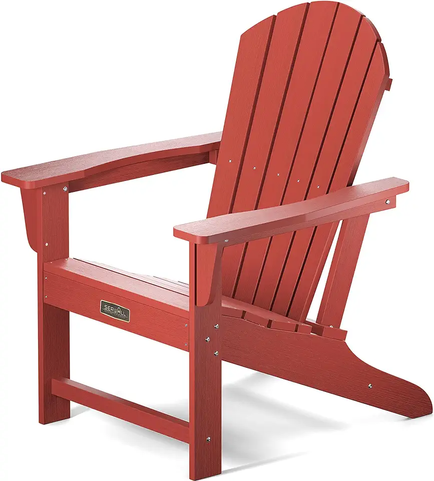 SERWALL Adirondack Chair | Adult-Size, Weather Resistant for Patio Deck Garden, Backyard & Lawn Furniture | Easy Maintenance & Classic Adirondack Chair Design (New Red)