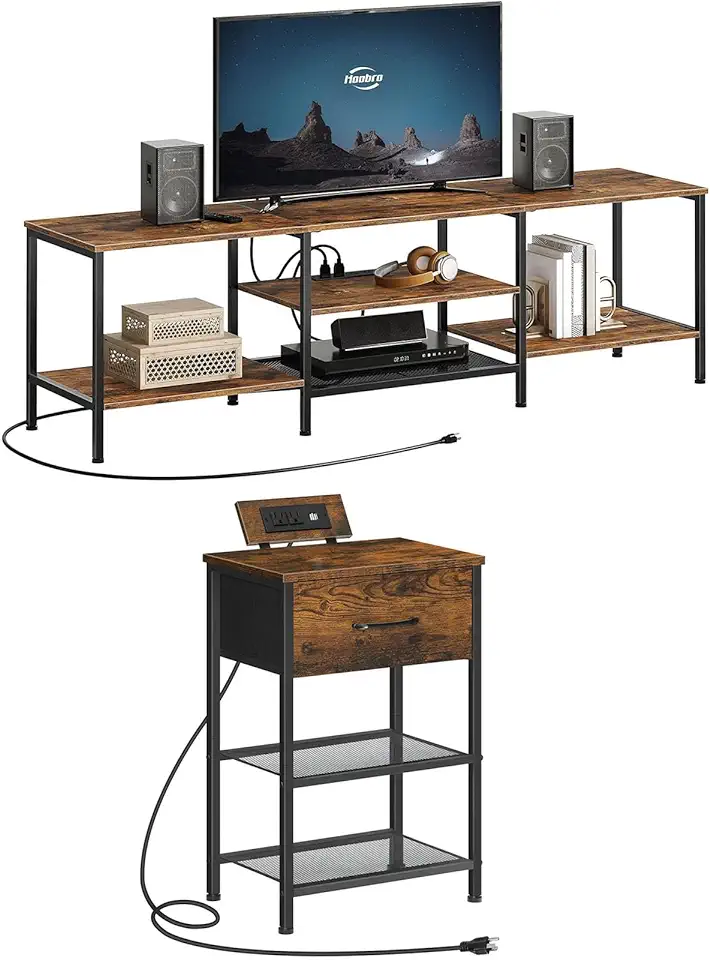 HOOBRO TV Stand with Power Outlets and Nightstand with Charging Station Bundle, for Bedroom, Small Spaces, Living Room BF80DS01-BF117UBZ01