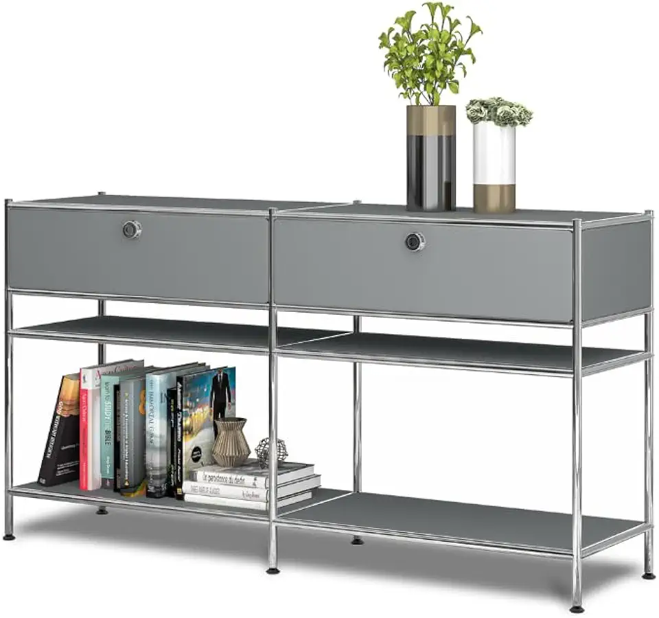Metal Console Table with 2 Drawers, Large Capacity Storage Cabinet,DIY Modern Home Furnishing, Great for Home, Office, Bookcase Storage Organizer, Hallways and Entryways (Grey)