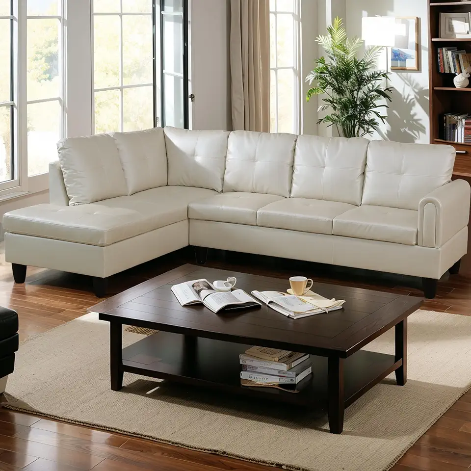 Modern Faux Leather Sectional Couch with Chaise and Ottoman-Large 3 Piece Sofa Set for Living Room-L-Shaped Left-Facing Sofa Furniture-Wood Frame-Sectional Sofa Set of 3- Ideal for Living Room White