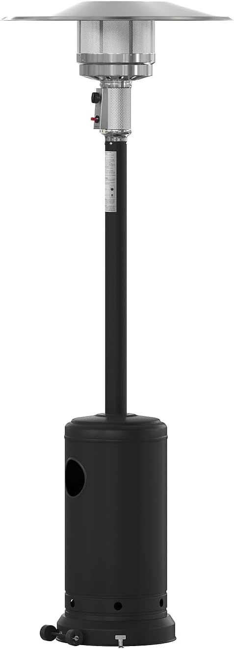 Flash Furniture Sol Patio Outdoor Heating-Black Stainless Steel 40,000 BTU Propane Heater with Wheels for Commercial & Residential Use-7.5 Feet Tall