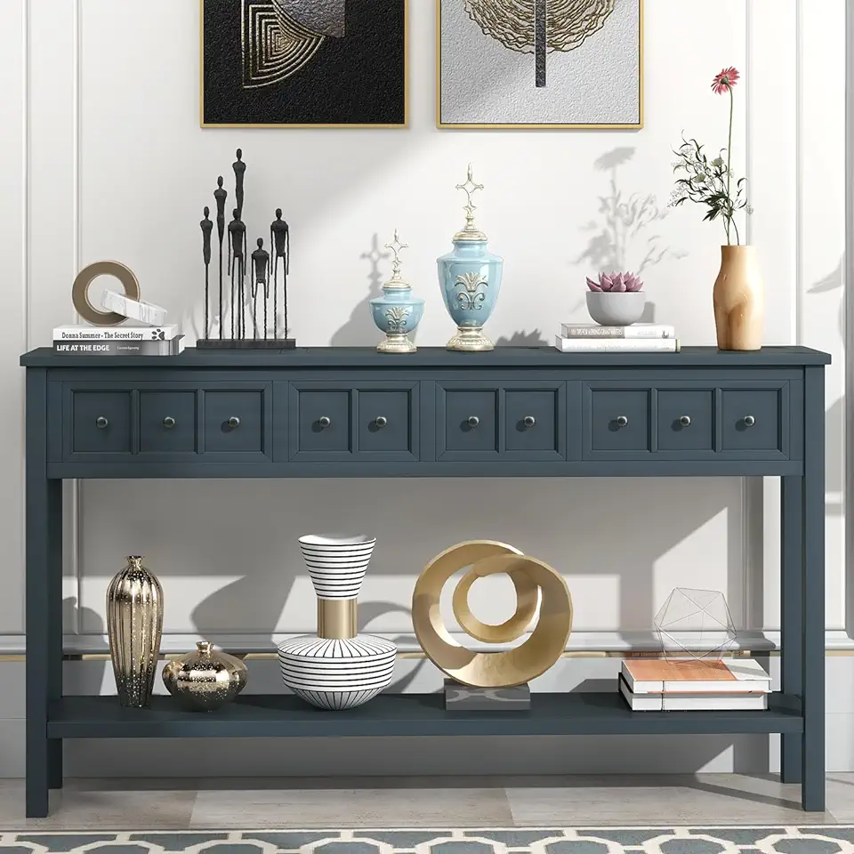 Console Table with Drawers,60inch Long Entryway Table,Different Size Drawer,Bottom Shelf,Wood Sofa Table,Console Tables for Living Room Entryway Bedroom Hallway(Navy)