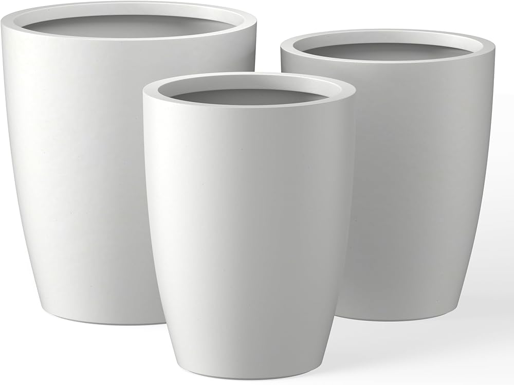 Kante 18.1",20.5",22.4" H Tall Round Concrete Planters Set of 3, Outdoor Indoor Modern Decorative Plant Pots with Drainage Hole & Rubber Plug for Home & Garden Pure White