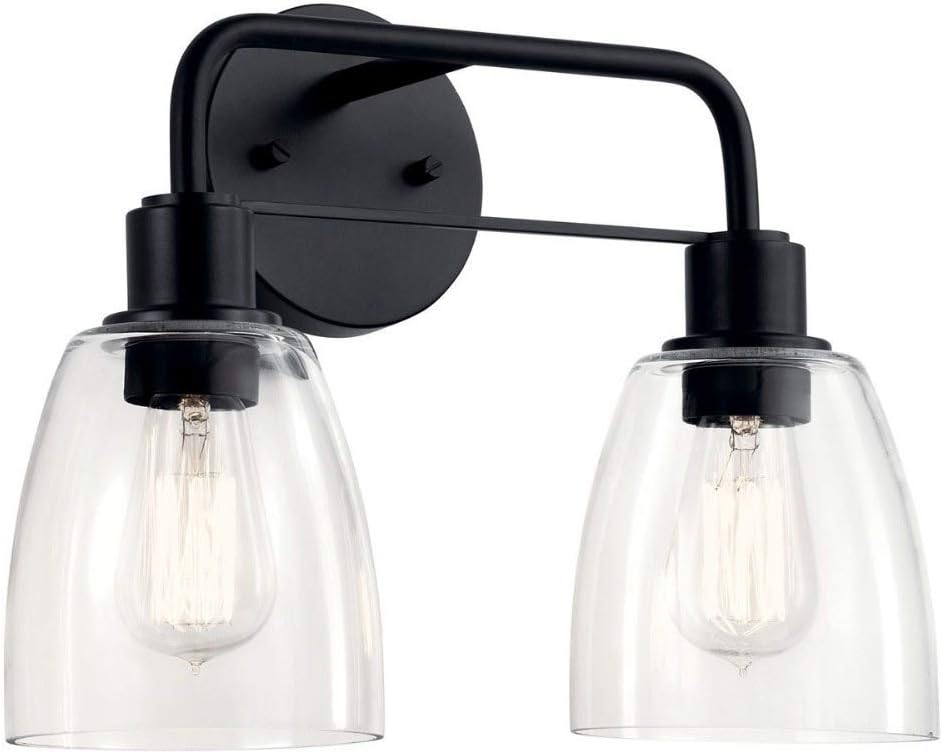 Kichler Meller 15 Inch 2 Light Vanity Light with Clear Glass in Black