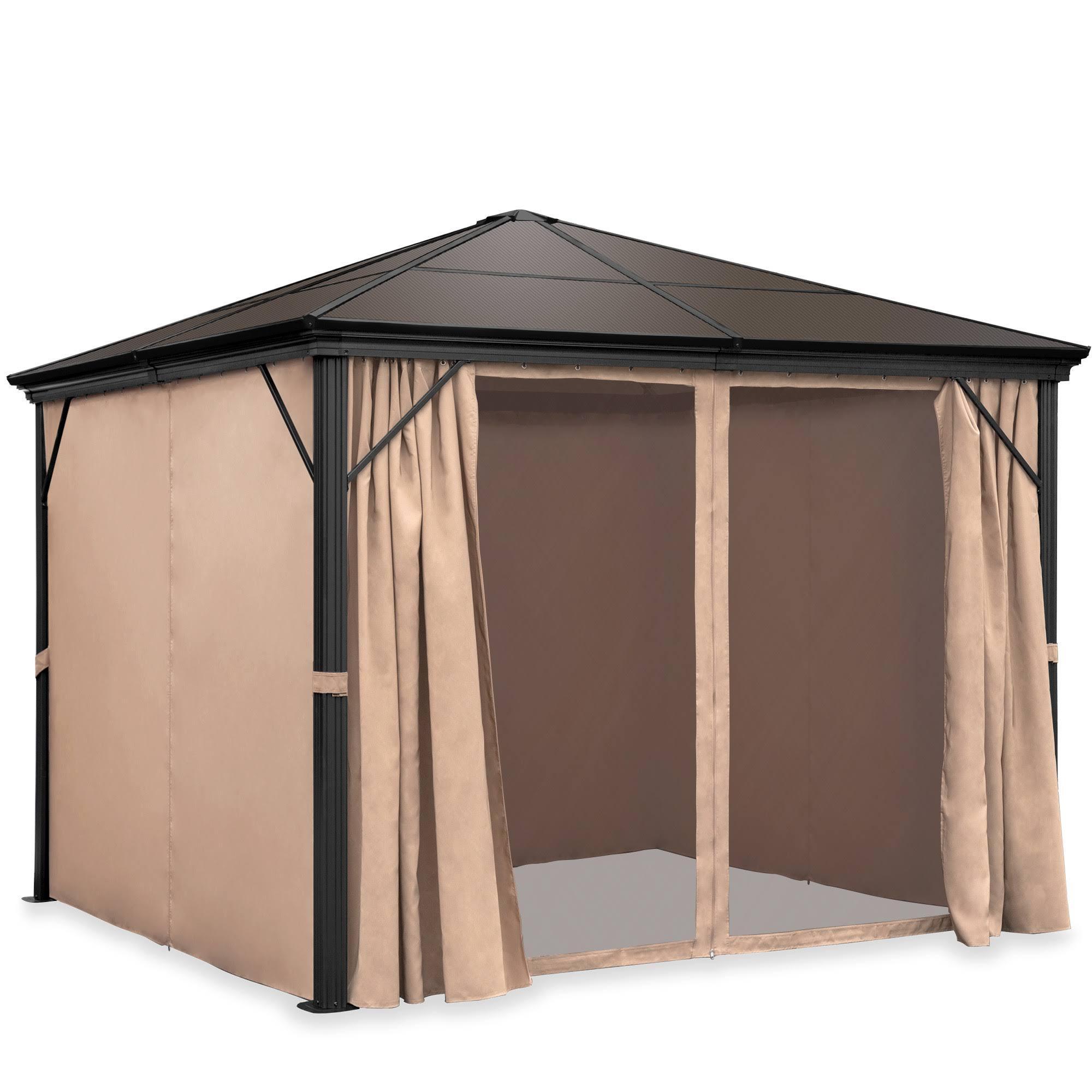 10x10ft Outdoor Aluminum Frame Hardtop Gazebo for Backyard Garden w/ Side Curtains Bug Nets