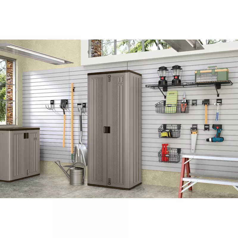 Suncast BMC7200 Resin Freestanding Garage Cabinet in Platinum (30 in. W x 72 in. H x 20 in. D)