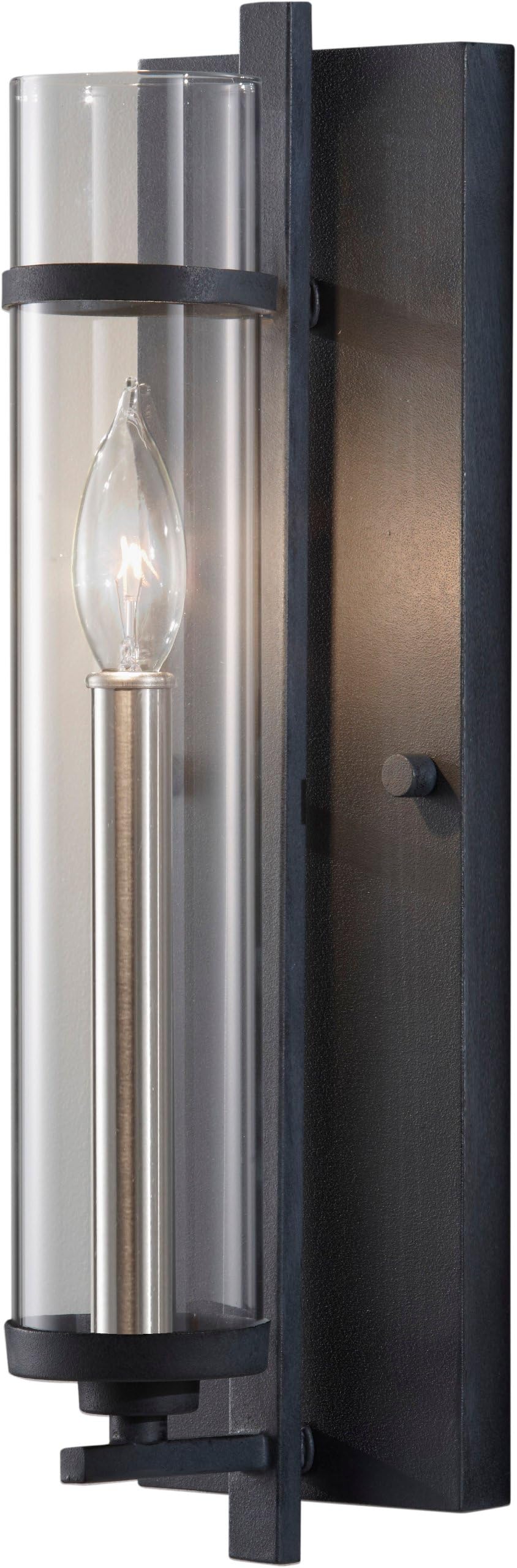 Feiss WB1560AF/BS Ethan Glass Wall Sconce Candle Lighting, Iron, 1-Light (5"W x 17"H) 60watts