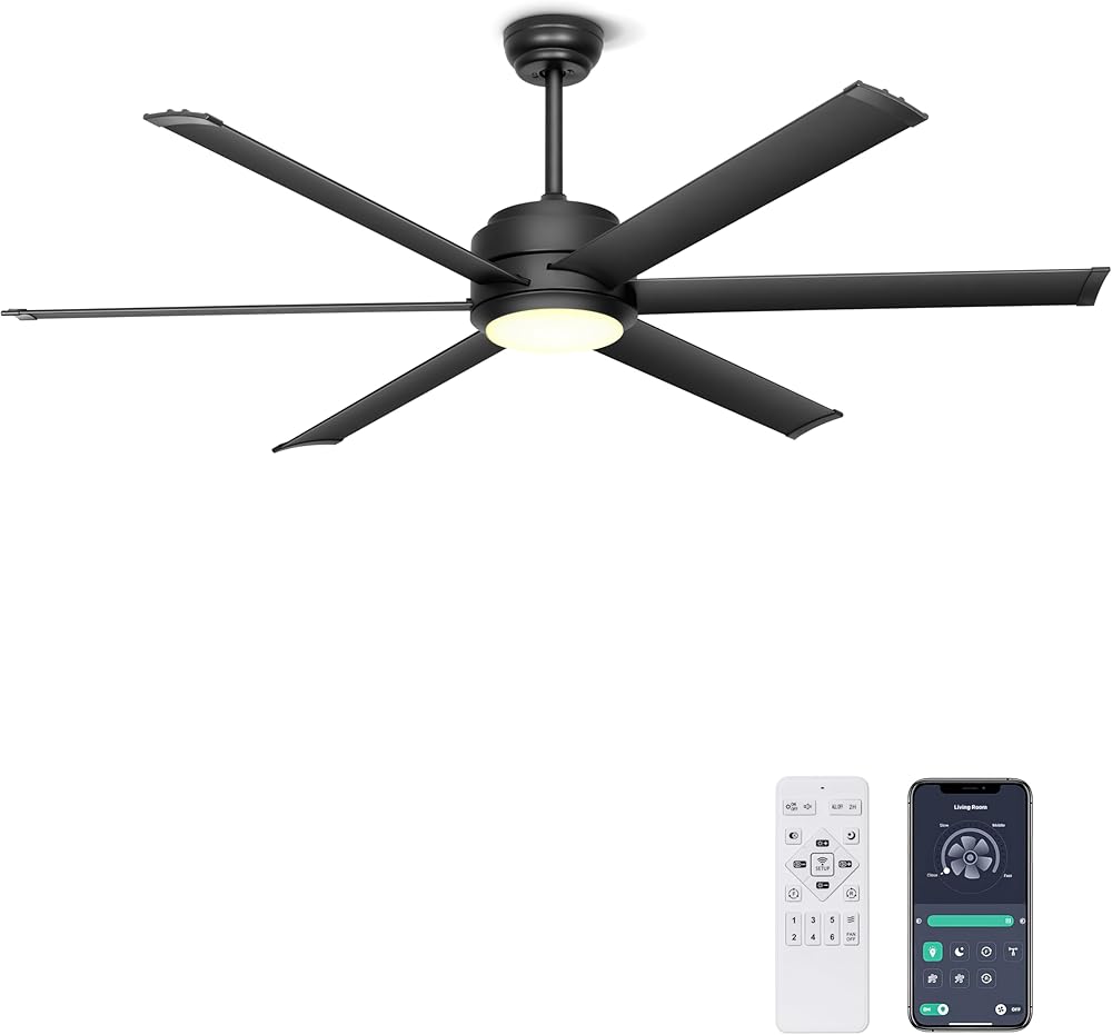 Ohniyou Ceiling Fan with Lights - 60" Industrial Ceiling Fan Remote & APP Control, Dimmable, DC Motor, Outdoor Ceiling Fan for Patio Living Room, Black